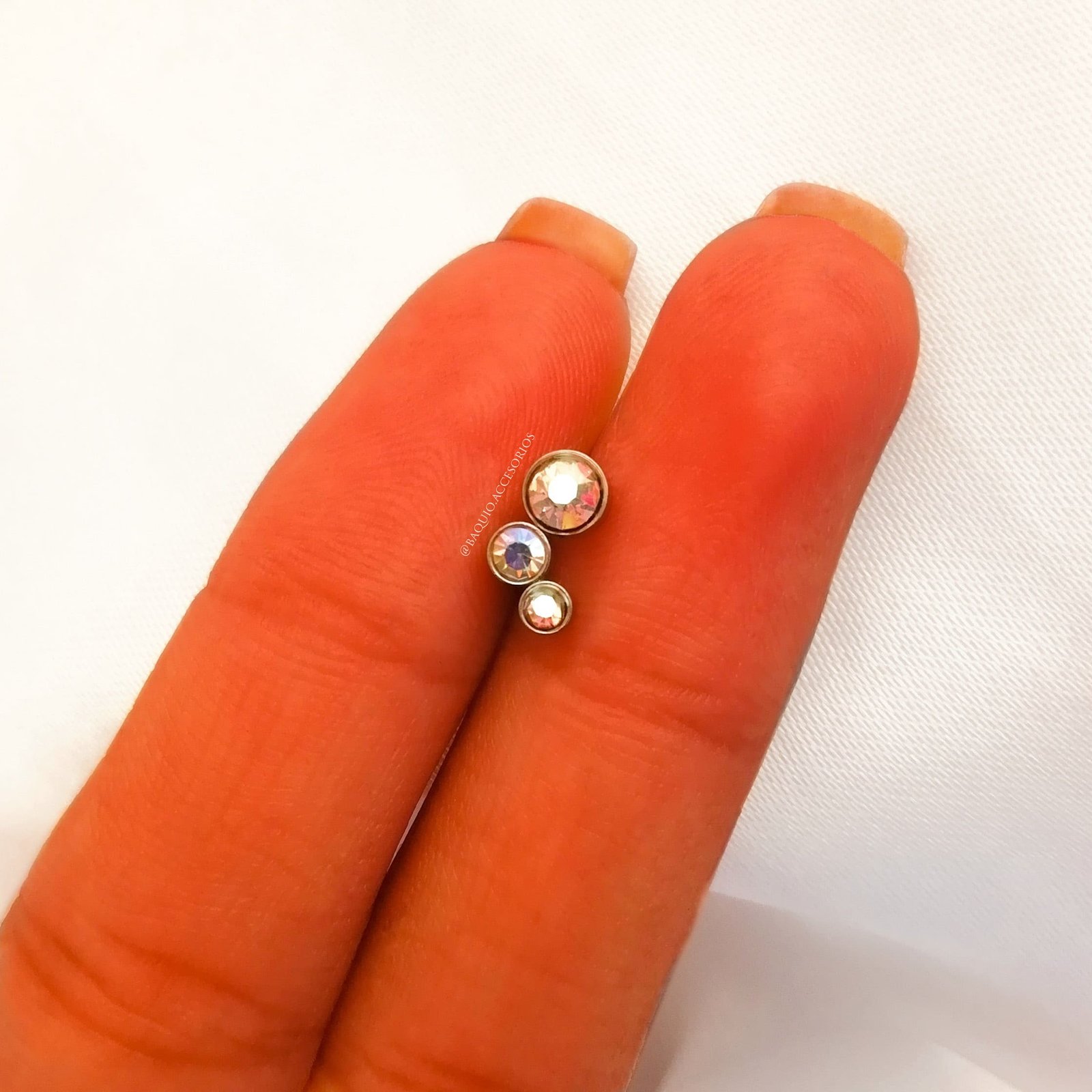 Strass pegado color tornasolado.